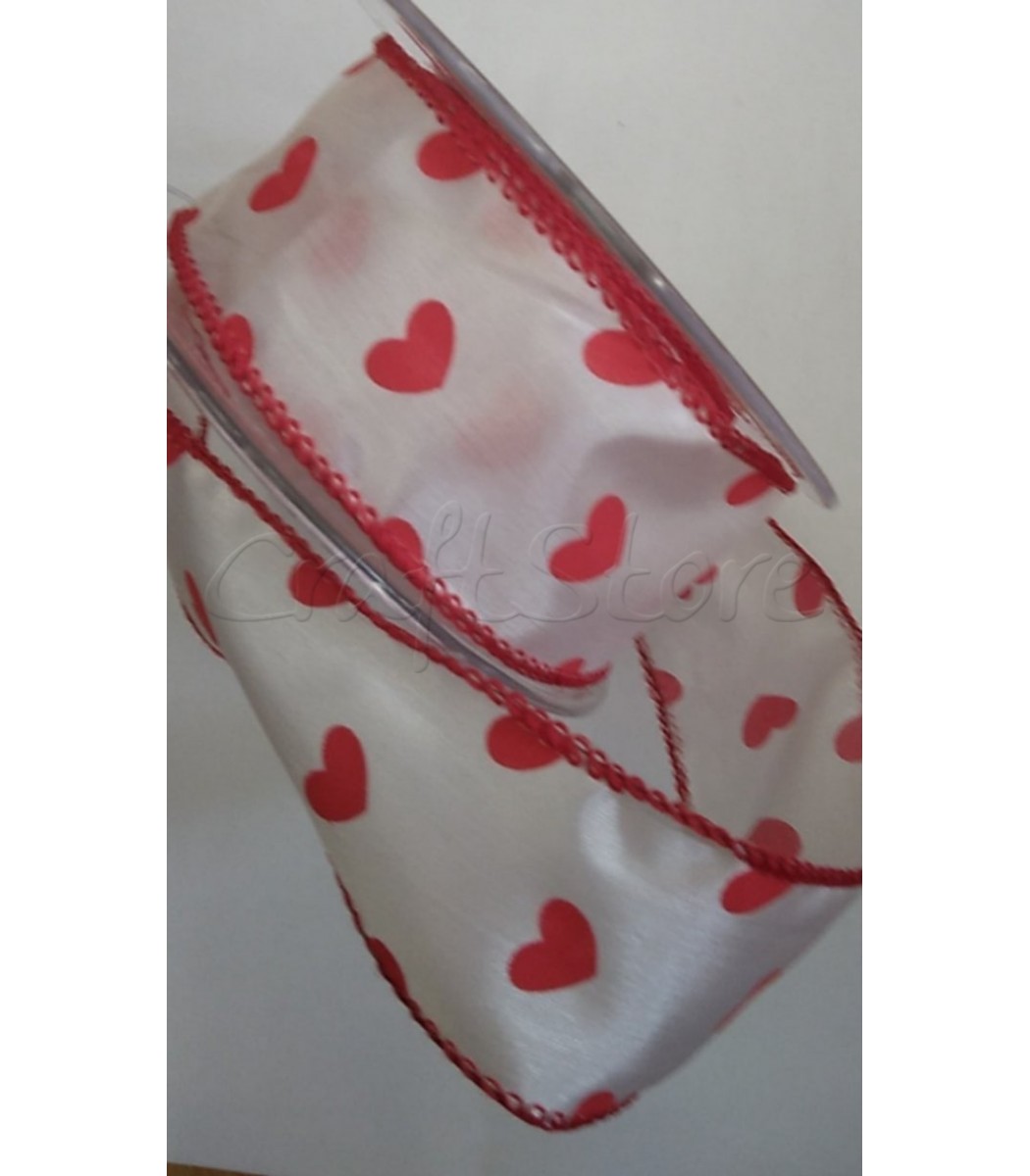 Κορδέλα Οργάτζα Πουά Καρδιές με σύρμα 4cm (ανά μέτρο)