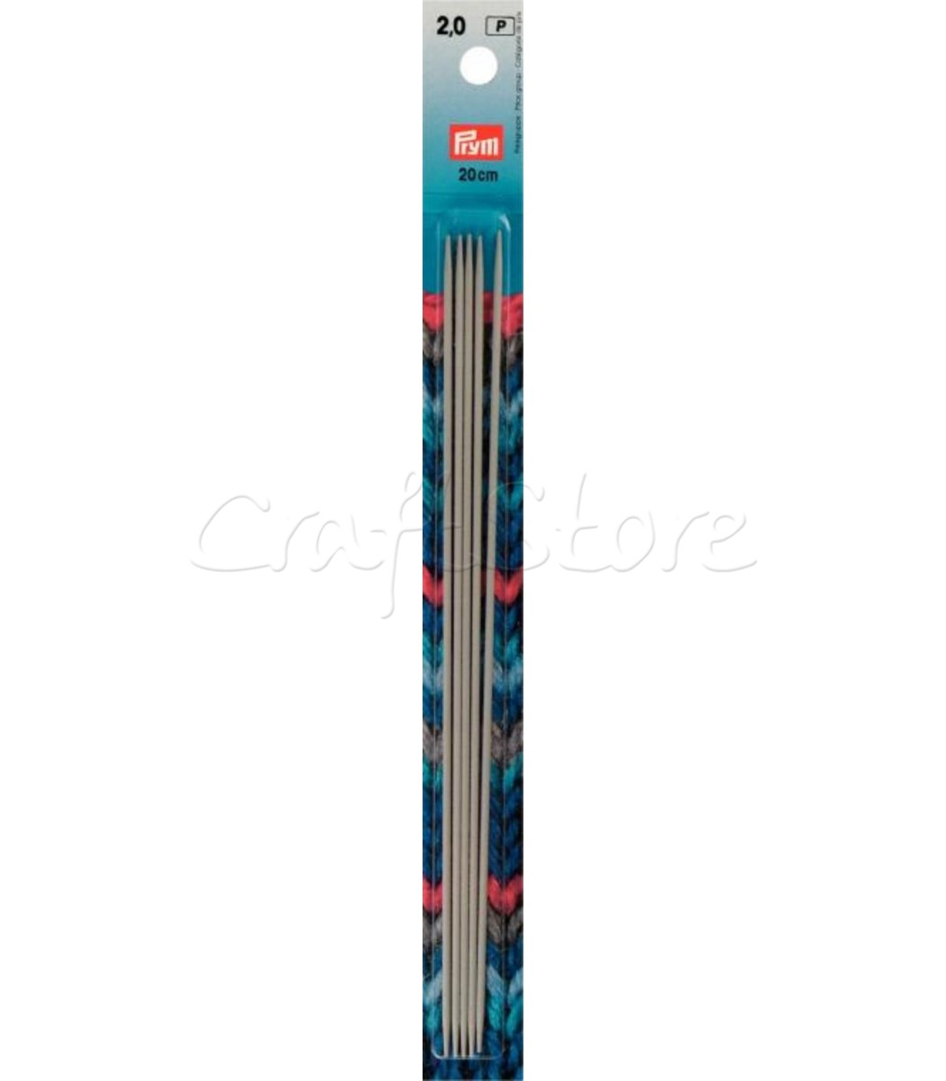 H Prym κατασκεύασε τις διπλές βελόνες πλεξίματος. Οι βελόνες είναι απο αλουμίνιο και είναι κατάλληλες για το πλέξιμο κάλτσας αλλά και σκούφων. Έχουν μήκος 20 εκατοστά και διάμετρο 2 χιλιοστά. Η συσκευασία περιέχει 5 τεμάχια.