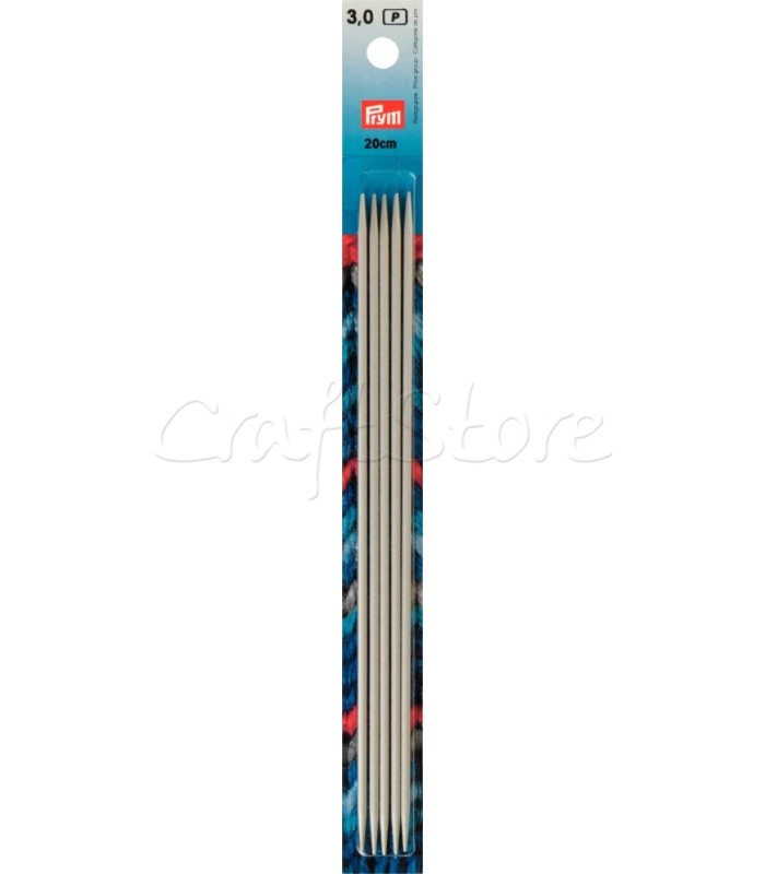 H Prym κατασκεύασε τις διπλές βελόνες πλεξίματος. Οι βελόνες είναι από αλουμίνιο και είναι κατάλληλες για το πλέξιμο κάλτσας αλλά και σκούφων. Έχουν μήκος 20 εκατοστά και διάμετρο 3 χιλιοστά. Η συσκευασία περιέχει 5 τεμάχια.