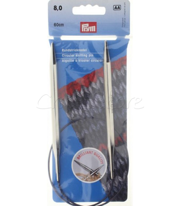 Η Prym κατασκεύασε τις μπρούντζινες κυκλικές βελόνες πλεξίματος για σκούφους και γκέτες. Οι βελόνες έχουν μήκος 60 εκατοστά και διάμετρο 8 χιλιοστά. Διαθέτουν ελαστικό καλώδιo.