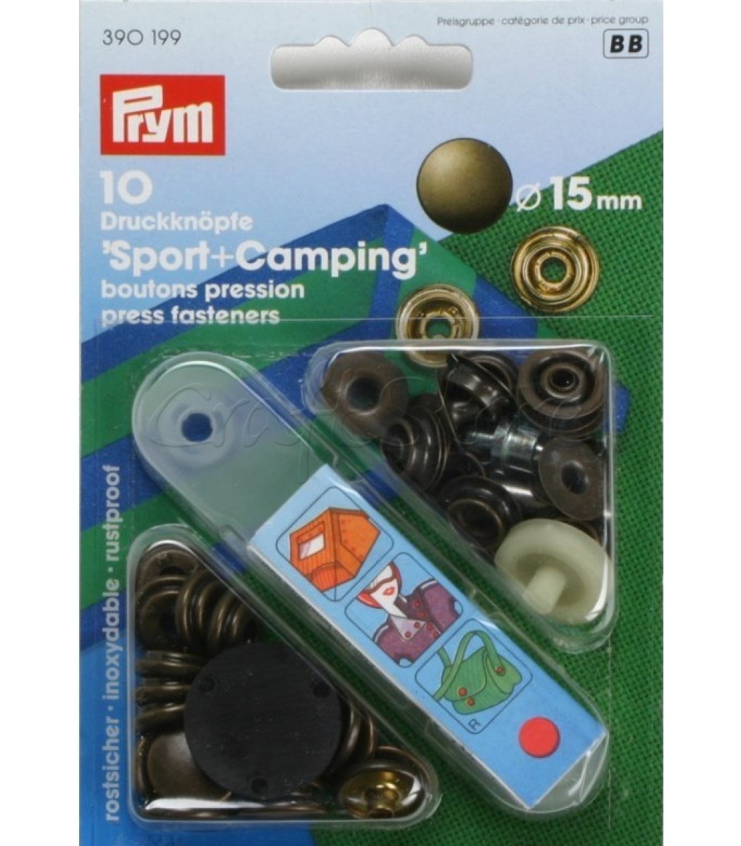 Τα τρουκς Sport&Camping της Prym είναι κατάλληλα για υφάσματα, αθλητικά είδη ένδυσης αλλά και για μπουφάν. Διαθέτουν βαριά δύναμη στερέωσης. Είναι από ορείχαλκο αντικέ και έχουν μέγεθος 15mm. Η συσκευασία περιέχει 10 τεμάχια και ειδικό εργαλείο για την τοποθέτηση τους.