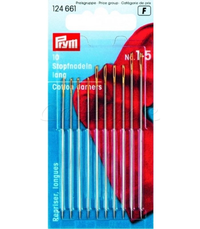 Οι βελόνες της Prym έχουν χρυσό κεφάλι και είναι κατάλληλες για καρίκωμα και ράψιμο σε σκληρά υφάσματα .Η συσκευασία περιέχει 10 βελόνες από το Νο 1 έως το Νο 5.