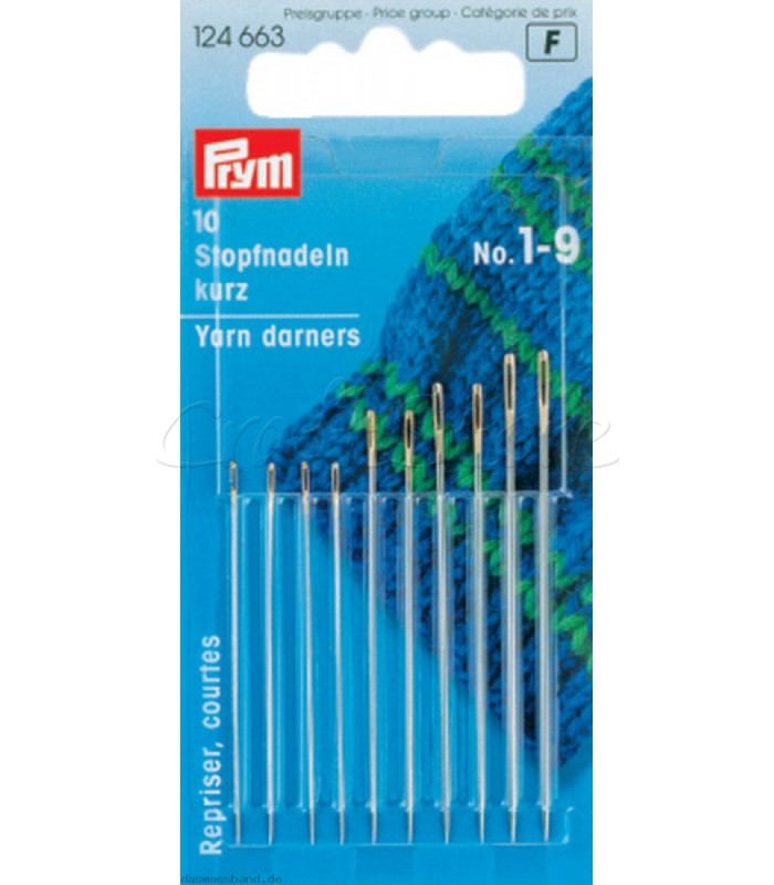 Οι βελόνες της Prym έχουν χρυσό κεφάλι και είναι κατάλληλες για καρίκωμα. Η συσκευασία περιέχει 10 βελόνες από το Νο 1 έως το Νο 9.
